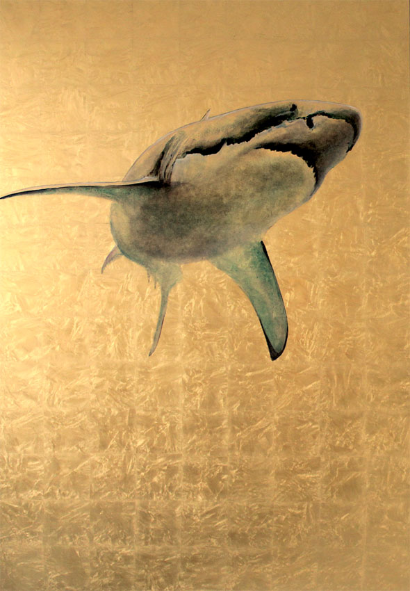 - Barbara Duisberg, „Oceans II, Teil 1“, 2019, Acryl auf Schlagmetall, 200 x 140 cm, Foto: Barbara Duisberg