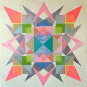 Bettina Weiß verbindet in ihrer Malerei gerade und diagonale Linien zu sternförmig angeordneten Winkeln, deren einzelne Elemente aus dem Bild herauszuwachsen scheinen. Ein Wechselspiel von gedeckten und leuchtenden Farbtönen, sowie verschiedene Materialstärken verleihen den Bildern Körperlichkeit. Kaleidoskopartig ändern sich Form und Ausdruck bei jedem Perspektivwechsel. Bettina Weiß kombiniert Ölfarbe mit Acrylfarben und Tinten in unkonventioneller Schichtung. Jedes Bild ist ein in sich geschlossenes System von geometrischen Grundformen mit lebendig wirkenden Flächen, die vibrieren zu scheinen.
